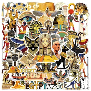 Tema da cultura egípcia antiga — Inclui 50 adesivos lindamente desenhados inspirados na arte e mitologia egípcias antigas, com símbolos de faraós, pirâmides, escaravelhos, gatos, Anúbis e Olho de Horus. Vinil impermeável durável — Feitos de vinil de alta qualidade, esses decalques são à prova d'água, resistentes ao sol e à prova de rasgos, ideais para uso interno e externo. Perfeito para projetos criativos de bricolage — Adicione um toque de mística à sua capa de celular, diário, garrafa de água, espelho, laptop ou qualquer item pessoal com essas ilustrações egípcias detalhadas e coloridas. Forte adesão e remoção sem resíduos — Fácil de colar, reposicionar e remover sem deixar resíduos. Seguro na maioria das superfícies lisas, como plástico, vidro e metal. Tamanho ideal para decoração — Cada decalque varia de 5 a 8 cm, o que os torna perfeitos para colocar em camadas, organizar ou criar designs independentes em notebooks, guitarras ou skates.