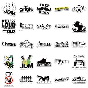 50 adesivos divertidos e exclusivos: este pacote inclui 50 adesivos divertidos e ousados, perfeitos para decorar seu carro, capacete de motocicleta, bagagem ou skate. Vinil de alta qualidade: feitos de material de vinil impermeável premium, esses adesivos são duráveis, duradouros e resistentes aos elementos, perfeitos para uso interno e externo. Fácil de aplicar e remover: os decalques são fáceis de descascar e colar, sem deixar resíduos pegajosos quando removidos. Ideal para decorar sem problemas. Perfeito para personalização: dê um toque divertido e pessoal aos seus equipamentos ou pertences, como capacetes, laptops, garrafas de água e malas, com esses adesivos legais. Ótimos para amantes de carros: esses adesivos apresentam humor e designs relacionados a carros e motos, o que os torna um presente perfeito para entusiastas de carros ou para quem adora decalques exclusivos e engraçados.