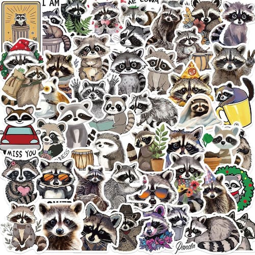 Adesivos, guaxinins, animais, vinil impermeável, anime, 50 unidades