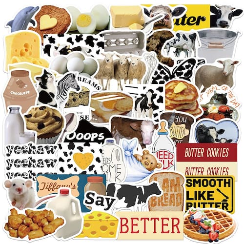 Adesivos, manteiga de vaca, queijos, vinil impermeável, 50 unidades/lote