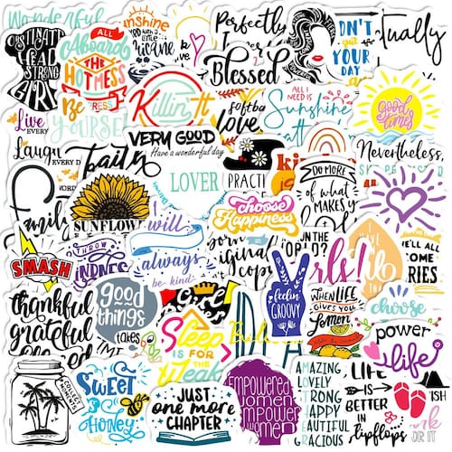 Material: papel e vinil Peso: 30-60 g Tamanho: 3-6 cm Quantidade: 50 unidades Desenhos inspiradores compactos: inclui 50 peças de miniadesivos (4 cm) com citações motivacionais, frases positivas e caligrafia moderna, perfeitos para decoração sutil. Durável e impermeável: feito de material de vinil de alta qualidade que é à prova d'água, à prova de sol e resistente a arranhões, garantindo cores e aderências duradouras. Ideal para superfícies pequenas: tamanho perfeito para decorar garrafas de água, capacetes, notebooks, laptops, capas de telefone e pequenos aparelhos. Fácil de aplicar e remover: a aplicação Peel-and-Stick os torna simples de usar, com adesivo que adere com firmeza, mas remove de forma limpa, sem deixar resíduos. Diversão criativa de bricolage: ótima para planejadores, diários, álbuns de recortes ou para personalizar acessórios de viagem e materiais de estudo com mensagens inspiradoras.