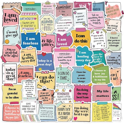 Material: papel e vinil Peso: 30-60 g Tamanho: 3-6 cm Quantidade: 50 unidades Pacote de adesivos inspirador: inclui 50 adesivos motivacionais com frases encorajadoras como “Continue”, “Seja forte” e “Nunca desista” para aumentar a positividade e a confiança. Duráveis e impermeáveis: feitos de material de vinil premium, esses decalques são à prova d'água, resistentes a rasgos e mantêm cores brilhantes para uso a longo prazo. Aplicações versáteis: perfeitas para decorar laptops, tablets, garrafas de água, skates, cadernos, álbuns de recortes, capas de telefone e malas. Fácil de usar e remover: o design peel-and-stick torna a aplicação rápida e simples, e os adesivos podem ser removidos de forma limpa sem deixar resíduos. Ideal para estudantes e criativos: ótimo para material escolar, diários e projetos pessoais para adicionar motivação diária e estilo único.