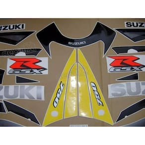 Adesivos moto suzuki gsxr 750 2003 amarela e cinza 75003 Kit adesivos moto suzuki gsxr 750 2003 amarela e cinza 75003am Adicionar aos favoritos Características: Adesivo impressão uv resistente a sol e chuva. Marca: orajet Vantagens: Vinil do tipo permanente com mais desempenho e estabilidade. Fabricante de renome internacional; Durabilidade de em média até 4 anos após aplicação; Resistência térmica, química, à umidade e à corrosão; Adesivo calandrado de fácil aplicação e alto grau de aderência. Adquira adesivos de qualidade Adesivo impresso com tinta uv, resistente a sol e chuva Aceita verniz automotivo exceto adesivos resinados Material próprio para linha automotiva 25 - unidades de adesivos Ref: spts-ad-1143 Info: Características: Alta qualidade e durabilidade. Material adesivo autocolante. Fácil aplicação. Suporta aplicação de verniz automotivo quando o adesivo não for resinado Produzido com recorte eletrônico. Ótima aderência. Resistente a chuva e raios uv. Não perde coloração. / entrega: Despachamos em até 24 horas úteis após confirmação de pagamento. Embalagem com proteção para transporte. Instalação: Limpe cuidadosamente as peças onde os adesivos serão aplicados, retirando todos os resíduos poeira, gordura, óleo, desengripante etc... Não utilizar materiais abrasivos sobre os adesivos. Após aplicação a cola leva até 48 horas para finalizar sua cura total. A spts produz adesivos automotivos seguindo medidas e cores compatíveis com o mercado. Trabalhamos com materiais de ponta, garantindo assim sua qualidade e também o melhor custo benefício para você. Possuímos adesivos para toda a linha automotiva, motos, caminhões, máquinas pesadas, máquinas agrícolas e também itens de personalização e resinados. Marca: Não Informado