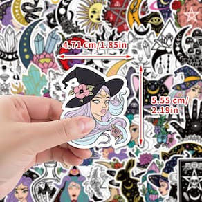 Material: papel e vinil Peso: 30-60 g Tamanho: 3-6 cm Quantidade: 50 unidades Tema de feitiçaria mística — Inclui luas, gatos, cristais, cartas de tarô, mãos mágicas e chapéus de bruxa para uma estética misteriosa. Vinil impermeável durável — Feito de material de vinil de alta qualidade, à prova d'água e resistente ao desbotamento, garantindo a durabilidade das cores vibrantes. Uso decorativo versátil — perfeito para personalizar laptops, álbuns de recortes, diários, garrafas de água, malas, skates e telefones. Fácil de aplicar e remover — O adesivo forte adere firmemente às superfícies planas e pode ser removido de forma limpa, sem deixar resíduos. Pacote criativo de bricolage — inclui 50 adesivos variados de vinil de feitiçaria, ótimos para adolescentes e adultos que gostam de decoração em estilo místico e gótico.