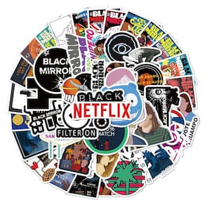 Adesivos pretos espelhos, vinil impermeável, anime, 50 unidades/lote