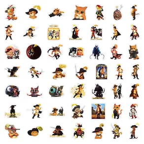 Adesivos Puss in Boots, anime, vinil impermeável, 50 unidades