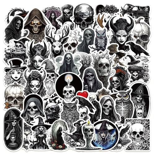 Adesivos Retros Horriblrs Skulls, vinil impermeável, 50 unidades