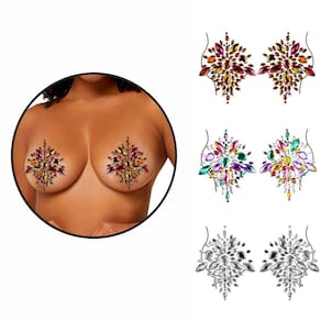Nosso adesivo autocolante é um acessório indispensável para o carnaval! Trazendo cor, brilho e vida a qualquer fantasia, uma peça vibrante e festiva, projetada para realçar a beleza e a exuberância dessa festa. O adesivo de pedrarias possui cores que refletem conforme mudamos de ângulo, a luz do sol e do flash, pedrarias reluzentes, deixando qualquer fantasia apta a ser desfilada nas festividades carnavalescas. A base do adesivo é flexível e confortável, se adapta facilmente à forma dos seios e do colo para garantir um ajuste seguro e agradável, podendo também ser recortada. Sendo dividido em duas partes, uma para cada seio. As pedrarias formam padrões divertidos e festivos, incorporando elementos típicos do Carnaval, como luz e muito brilho.