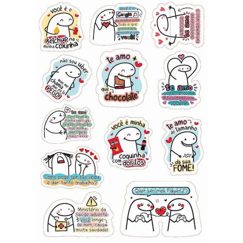 Kit de 3 Cartelas de Adesivos Stickers Flork Meme Decorativos
