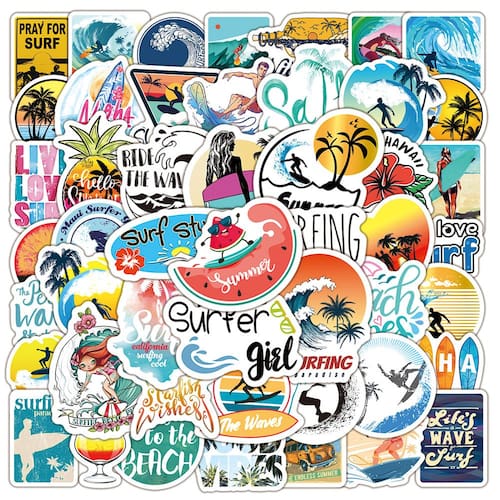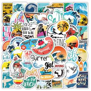Adesivos Surfings Summers Beachs, vinil impermeável, 50 unidades