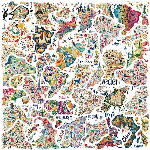 Material: papel e vinil Peso: 30-60 g Tamanho: 3-6 cm Quantidade: 50 unidades50 adesivos exclusivos do mapa mundial — Apresenta formas lindamente ilustradas de países e continentes repletas de ícones culturais, pontos turísticos, animais e padrões tradicionais de todo o mundo. Vinil impermeável durável — Feito com vinil de alta qualidade que é à prova d'água, resistente aos raios UV e de longa duração, perfeito para decoração interna e externa sem desbotar. Decoração DIY versátil — Ótima para decorar malas de viagem, álbuns de recortes, laptops, diários, cadernos, garrafas de água, skates e muito mais, adicionando um toque colorido inspirado em viagens. Fácil de aplicar e remover — os adesivos se soltam facilmente e podem ser reposicionados sem deixar resíduos pegajosos, o que os torna perfeitos para crianças, adolescentes e adultos que gostam de projetos criativos. Educacional e inspirador — Uma maneira divertida de aprender geografia e explorar culturas mundiais enquanto personaliza seus pertences e desperta a curiosidade sobre diferentes países e regiões.