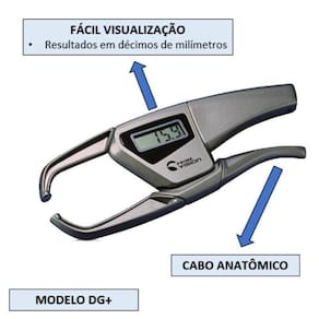 Resolução Científica: 0,1 mm - décimos de milímetro.Recursos Computadorizados:- Visor Digital: Mostra o valor da dobra cutânea em números digitais grandes.- Leitura Infinita: Após a abertura do Adipômetro, o avaliador define o melhor momento para ler o valor no visor do Adipômetro.- Leitura por Tempo: É a leitura automática, após 4 segundos da acomodação das pinças do Adipômetro na dobra.- Leitura por Estabilização: É a leitura automática, verificada pelo computador do Adipômetro após a acomodação das pinças na dobra.Este equipamento é aprovado por estudo científico comparativo de aplicação pratica realizado pelo Dr. Prof. José Fernandez Filho da Universidade Federal do Rio de Janeiro - UFRJLista completa do kit:01 adipômetro digital científico prime med dg+ 01 estojo luxo para transporte e proteção01 lápis marcação de pele01 trena antropométrica 1,5m com ponteira elástica01 disco para cálculo de IMC