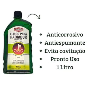 Fluido de Radiador Pronto Uso Radflu Verde 1 Litro O Fluido de Radiador Pronto Uso da Radflu é formulado para oferecer proteção superior ao sistema de arrefecimento do seu veículo. Esta fórmula de alto desempenho previne o superaquecimento, a corrosão e o acúmulo de incrustações, garantindo o desempenho ideal e a longevidade do motor. Adequado para todos os tipos de veículos, já vem pré-misturado para conveniência e uso imediato, eliminando a necessidade de diluição. Além disso evita cavitação do sistema. Marca: Não Informado