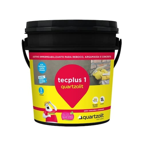 Especificações gerais: Aditivo líquido impermeabilizante para concreto e argamassa, quando é adicionado à água de amassamento proporciona a redução da permeabilidade para evitar a umidade e infiltração d¿água na argamassa. Aumenta a coesão das argamassas, para melhor trabalhabilidade. Pode ser aplicado concretos e argamassas em elementos que estejam expostos à umidade e à pressão da água. Indicações: Homogeneíze o produto na embalagem ou misture tecplus 1 quartzolit com uma haste metálica até obter a completa homogeneização. Evite aplicação da argamassa/concreto sobre superfícies expostas diretamente ao sol ou se houver risco de chuva.