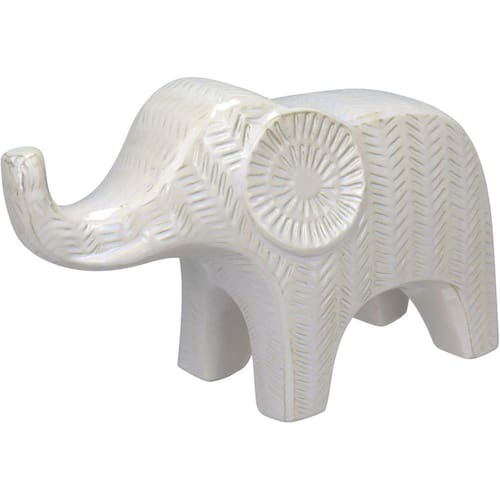 ADORNO DECORATIVO ENFEITE CASA APARADOR HOME&CO ELEFANTE CERÂMICA 17x30x10cm BRANCO