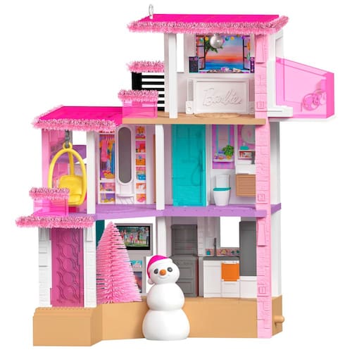 Adorno Navideño Hallmark Keepsake 2025, Barbie Merriest Dreamhouse Musical con Luz, Regalos para Fans de Barbie. - Rememora los días soñando con el estilo de vida Barbie con este adorno navideño Merriest Dreamhouse de Hallmark Keepsake. Reproduce un espectáculo de luces y sonido al conectarlo al Cable de Energía Keepsake (se vende por separado). - Conecta el adorno mágico de luz y sonido al Cable de Energía Keepsake (se vende por separado) para ver un efecto continuo de luces. Presiona el botón para disfrutar un show sincronizado de sonido y luz con una versión divertida de "Carol of the Bells". - Obra del artista Jake Angell. Adorno plástico con accesorio para colgar. - Incluye: un adorno de árbol de Navidad Hallmark Keepsake 2025 en caja de regalo. Requiere Cable de Energía Keepsake de Hallmark (se vende por separado). No requiere baterías. - Tamaño aproximado en centímetros: 11,5 x 12,7 x 7,6 cm.