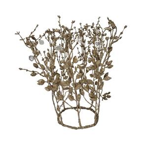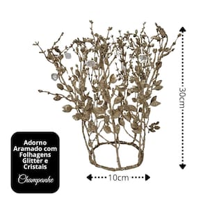 Adorno Natalino Coroa Folhagens Champanhe Cristais 30cm