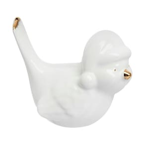O Adorno Pardal Joy tem 9 cm e é produzido em cerâmica com detalhes em dourado.