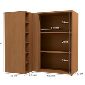 Você e sua cozinha merecem a beleza e qualidade do Aéreo de Canto G768 da Cozinha Maxxi da Kappesberg. Em MDP de 15mm, o que garante mais robustez e qualidade, são 90cm de altura, 98cm de largura e 59cm de profundidade. Perfeito para composições em "L", o aéreo possui uma porta, três prateleiras e muito espaço para louças e mantimentos. Podendo ser montado para ambos os lados e combinando com o balcão de mesmo tamanho, o diferencial é o nicho garrafeiro, com uma adega particular em sua casa. Com sete camadas de pintura na cor canela, seu acabamento touch, garante a sensação de conforto e aconchego ao espaço. Os destaques ficam para o sistema de amortecimento na porta e o puxador em alumínio na cor champagne, que em formato de canaleta, garante um design único e moderno. Acabamento da Prateleira: Pintura Escala de Brilho da Prateleira: Fosco Acabamento da Porta: Pintura Escala de Brilho da Porta: Fosco Material do Puxador da Porta: Alumínio Ambiente Principal: Cozinha Complexidade da Montagem: Média: pode ser montado por mais de uma pessoa e/ou necessite de maior conhecimento para montagem Cor: Canela Cor do Produto: Canela Cor Interna: Canela Escala de Brilho: Fosco Itens Inclusos: 1 Aéreo, manual de montagem e ferragens Linha ou Coleção: Cozinha 18 Maxxi Manual de Montagem e Instalação: https://product-hub-prd.madeiramadeira.com.br/932153/documents/8b409597-742d-471a-85b7-a69db6aae3ba2239438544517240932584345.pdf Material da Dobradiça/Corrediça da Porta: Metálica Material da Porta: MDP Material da Prateleira: MDP Necessita Montagem: Sim Origem do Produto: Nacional Peso: 38,6006 kg Peso Máximo por Prateleira: 7 kg Possui Espelho: Não Possui Possui Pés: Suspenso Possui Portas: Sim Possui Prateleiras: Sim Possui Vidro: Não Recomendações de Uso, Manutenção e Limpeza: Use um pano limpo e ligeiramente umedecido em água ou álcool (recomendamos álcool etílico hidratado). Logo após, seque a superfície com um pano seco e macio. Em grandes superfícies limpe pequenas áreas de cada vez, trabalhando de baixo para cima. Sapatas Niveladoras: Não Sistema de Montagem: Parafuso Philips Suporta Até (kg): 20 kg Tipo de Dobradiça/Corrediça da Porta: 35 mm Tipo de Puxador da Porta: Externo