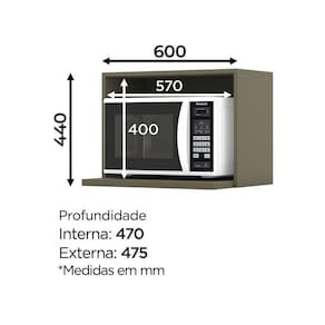 Aéreo microondas Connect, tem 440mm de altura, 600mm de largura e 475mm de profundidade. Com um espaço para eletrodomésticos foi projetado para proporcionar praticidade e funcionalidade ao uso. Disponibiliza de várias opções de módulos que possibilitam diversas composições lineares, este produto foi desenvolvido para atender os mais criteriosos usuários aliando funcionalidade com elegância.