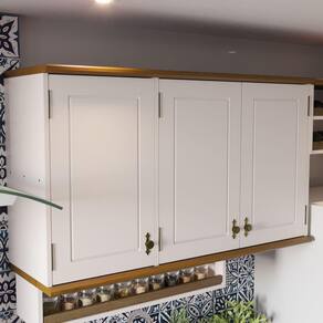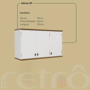 O Aéreo 3P Retrô tambem é parte da nossa linha exclusiva de módulos de cozinha que se destaca por seu design sofisticado e sua preocupação ambiental. Este armário é ideal para os amantes do estilo clássico. Tampo e base feitos em madeira maciça de 25mm, provenientes de fontes reflorestadas. demonstrando nosso compromisso com o meio ambiente. Puxadores com textura de ouro velho, que proporcionam um charme vintage e elegante, complementando perfeitamente o estilo provençal do móvel. Pintura atóxica e acabamento em laca, garantindo não apenas uma aparência estética superior, mas também segurança e durabilidade. As portas são enriquecidas com uma linha de detalhe em baixo relevo, oferecendo uma textura delicada e um visual único. O amplo espaço interno é perfeito para armazenar uma variedade de itens, mantendo sua cozinha organizada e funcional.