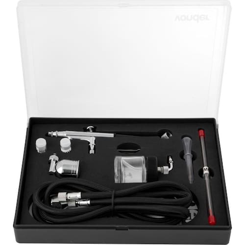 Marca: VonderConteúdo da embalagem: 1 Aerógrafo com 15 acessórios. Acompanha: 3 bicos 0,2 mm, 0,3 mm e 0,5 mm , 3 agulhas 0,2 mm, 0,3 mm e 0,5 mm , 1 copo de metal 7 ml, 1 copo de vidro 22 ml, 1 chave, 1 mangueira 1,8 m, 1 conector 1/8 fêmea com espigão 1/4, 1 tudo de sucção e 2 adaptadores rápidos.Destaques e diferenciais:Proporciona baixo consumo de ar, com excelente precisão e desempenho.Dicas de uso:Indicado para trabalhos artesanais e atividades que exijam precisão e qualidade, como: micropinturas, retoques, personalização de veículos, capacetes, tanques de motos, entre outros. Pode também ser utilizado com produtos alimentícios e outros, tais como: culinária, confeitaria, pinturas corporais e maquiagem.Detalhes Técnicos:Material: Cobre Pressão de trabalho do aerógrafo: 15 lbf/pol - 50 lbf/pol Rosca de entrada de ar do aérografo: 1/8 BSP macho Capacidade da caneca: 7 ml metálica e 22 ml vidro Consumo de ar do aerógrafo: 0,07 pcm 2 L/min