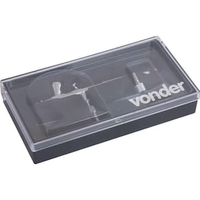 1 Aerógrafo com 10 acessórios, sendo: 1 pistola com copo, 1 minicompressor, 1 adaptador 100 V~ - 240 V~, 1 mangueira com 1,8 metros, 1 chave, 1 adaptador (1/4 NPT fêmea - 1/8 NPT macho), 2 conectores para mangueira (rosca 1/8? NPT fêmea com espigão 3/16?), 1 tubo de sucção e 1 suporte de apoio para aerógrafo