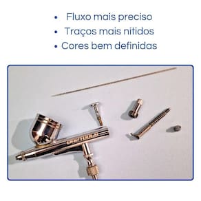 Muito prático e versátil, essa ferramenta é ideal para trabalhos de pintura com precisão, como artesanato, artístico, bronzeamento a jato, aeromodelismos, culinária, pigmentação capilar, etc.