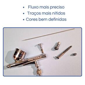 Aerógrafo onetools profill dupla ação copo fixo 0,5mm on05 O aerógrafo onetools profill 0,5mm possui uma estrutura mecânica projetada para um fluxo de tinta mais preciso, garantindo traços mais nítidos e cores bem definidas. Diferente de modelos comuns, o profill tem ajuste interno que regula melhor a saída de tinta, evitando excesso ou falhas na aplicação. Com o profill voce consegue ajustar a pressão do compressor de forma otimizada, garantindo o fluxo contínuo sem espirros ou borrões. - traços mais limpos e sem falhas Aerógrafo copo fixo - dupla ação 0,5mm - exclusividade tudo de ferramentas em parceria com a onetools - único aerógrafo do mercado do tipo gravidade com copo fixo que possui bico 0,5mm, ideal para trabalhos que usam tintas um pouco mais grossas, como barbearias por exemplo. Onetools Muito prático e versátil, essa ferramenta é ideal para trabalhos de pintura com precisão, como artesanato, artístico, bronzeamento a jato, aeromodelismos, culinária, pigmentação capilar, etc. Leve e prático, perfeito para atender sua necessidade. Itens inclusos - caneta aerógrafo dupla ação bico 0,5mm copo fixo - conector para mangueira de ar - chave - estojo plástico Especificações - pressão de trabalho - 15 a 50 psi - rosca entrada de ar - 1/8 bsp Temos também a mangueira para esse modelo, consulte-nos. Marca: Não Informado Ean: 7901494513881