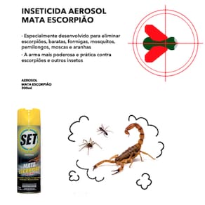 Agite bem antes o tubo e pressione a válvula, aplicando o Aerossol SET INSET MATA ESCORPIÃO diretamente, sobre o escorpião e outros insetos no ambiente. Para uma ação mas eficiente, aplique nos rodapés, frestas, fendas e esconderijos, de baixo de geladeira de guarda roupas, sapateira, entrada das portas no piso e para peito de janelas.