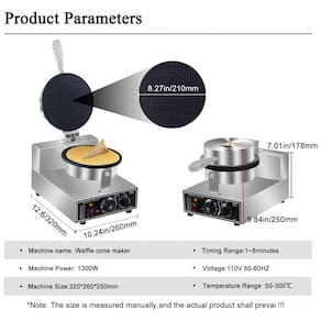 A Máquina Elétrica de Cone de Sorvete AEYDJXMER é feita com aço inoxidável de alta qualidade, garantindo durabilidade e resistência para uso comercial. Seu design moderno apresenta uma superfície com revestimento antiaderente espesso, proporcionando uma textura crocante perfeita para casquinhas de sorvete sem que grudem. Fácil de usar, basta pré-aquecer a máquina e, graças ao molde fixo inferior, a casquinha fica uniforme e crocante rapidamente. O cabo em aço inoxidável com design em espiral oferece segurança, evitando acidentes e proporcionando conforto durante o manuseio. Além disso, a limpeza é simples, feita apenas com um pano úmido. Com controle independente de tempo e temperatura, você ajusta com precisão para obter o resultado ideal, e o indicador luminoso informa o funcionamento da máquina. Segurança e eficiência são prioridades, com cabo anti-queimaduras e pés de borracha antiderrapantes que garantem estabilidade. Este equipamento versátil é ideal para criar cones, copos e tigelas de waffle, pequenos biscoitos crocantes e muito mais, sendo perfeito para padarias, cafeterias, lanchonetes, restaurantes e estabelecimentos de fast-food.