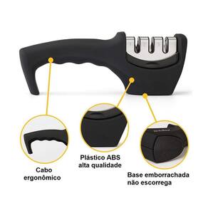 Praticidade e facilidade para afiar sua faca em 3 opções. Você não precisará mais amolar sua faca com pedras ruins, ou ter que levar em algum especialista para amolar. Esse afiador de facas é sensacional, um produto perfeito para quem preza por um corte perfeito e com uma excelente precisão, resultando em maior facilidade e praticidade em sua cozinha. Serve para pessoas canhotas ou destras, possui apoio emborrachado para dar firmeza ao amolar sua faca proporcionando mais segurança. - 3 estágios: Afiar, Amolar e Acabamento; - Afiador removível. Marca: Não Informado