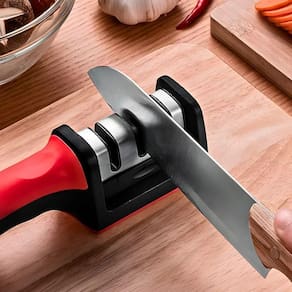 O cabo ergonômico com design confortável permite segurar o afiador com firmeza e segurança, reduzindo o esforço durante o processo. Para utilizar, basta posicionar a faca no estágio correspondente e realizar de três a cinco movimentos em uma única direção. Em poucos segundos, a lâmina estará afiada e pronta para uso.