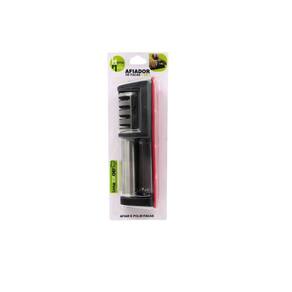 Instruções de uso Coloque o afiador de facas na plataforma, segure o cabo com a mão esquerda, e coloque a faca verticalmente na parte de afiar n1 com a mão direita, usando a força adequada, com a ponta da faca voltada para baixo, sempre puxando para trás nunca para frente . Repita esse processo algumas vezes até que sua faca esteja perfeitamente afiada.