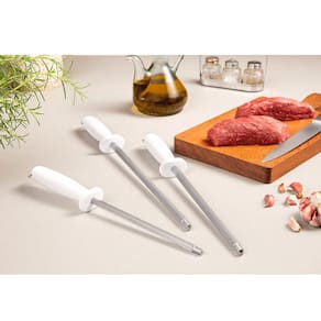 Afiador de Facas Chaira Masterline Mundial 12' em Aço Carbono e Cabo em Polipropileno Branco.