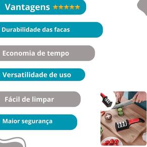 Afiador de facas e tesouras premium com alta precisão Descrição do anúncio: Nosso afiador de facas é indispensável para sua cozinha, sendo simples e rápido de usar. Basta dar de 3 a 4 movimentos através do afiador e pronto sua faca estará como nova. Seu cabo ergonômico oferece conforto e segurança na hora de manusear, além de ser resistente e compacto. O afiador possui três fases para amolar: preparar, afiar e polir. Além de recuperar o fio com rapidez e facilidade, ainda possui pedra de cerâmica que dá polimento final em suas facas. Conteúdo da embalagem: 01- afiador de facas Características: Afia facas e tesouras de aço inox Afia simultaneamente os dois lados da faca Não deve ser para afiar lâminas serrilhadas Não necessita água ou óleo para afiar Produto moderno, simples e fácil de usar Cabo ergonômico para conforto e segurança Três fases de afiação: preparar, afiar e polir Pedra de cerâmica para polimento final Especificações: Material: aço inoxidável, plástico, cerâmica e borracha Peso: 165g Largura: 5,1cm Altura: 5,5cm Comprimento: 21cm Principais perguntas sobre o produto e respostas: O afiador pode ser em facas de cerâmica Não, o afiador não deve ser em facas de cerâmica. O afiador acompanha alguma faca Não, o afiador não acompanha faca. Posso escolher a cor do afiador Não, as cores são enviadas de acordo com o disponível. O afiador pode ser em facas serrilhadas Não, o afiador não deve ser utilizado em facas serrilhadas. Preciso usar água ou óleo para afiar as facas Não, o uso de água ou óleo não é necessário. Qual é a do produto O produto tem do vendedor de 30 dias. Como devo usar o afiador corretamente Coloque o afiador em uma plataforma, segure o cabo com a mão esquerda e com a mão direita coloque a faca verticalmente na parte de afiar nº1 . Puxe sempre para trás com força apropriada e repita várias vezes até a faca estar afiada. Depois, utilize a parte nº2 e nº3 para polimento final. Quais são as dimensões do afiador Largura: 5,1cm, altura: 5,5cm, comprimento: 21cm. Marca: Não Informado