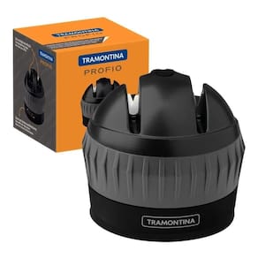o afiador de facas tramontina profio preto é indispensável em toda cozinha com base antideslizante e dois estágios de afiação, ele garante a manutenção adequada do fio das suas facas e proporciona maior facilidade e praticidade para seu dia a dia