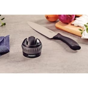 o afiador de facas tramontina profio preto é indispensável em toda cozinha com base antideslizante e dois estágios de afiação, ele garante a manutenção adequada do fio das suas facas e proporciona maior facilidade e praticidade para seu dia a dia
