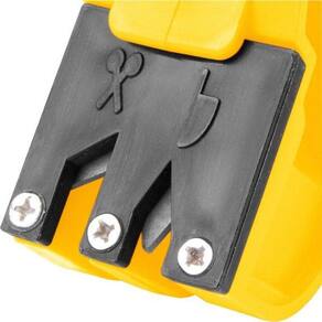 Afiador De Facas/tesouras Com Vídea Vonder Aplicações e dicas de uso Afiador 2 em 1, pois possui 2 pastilhas de metal duro (vídea) sobrepostas em formato V para afiar facas e 1 pastilha de metal duro (vídea) em ângulo para afiar tesouras, proporcionando praticidade e rapidez na operação e perfeito acabamento Indicado para conexão rápida em redes de ar comprimido Indicado para afiar facas e tesouras Características Técnicas