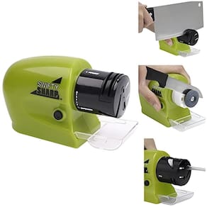 Amolador de Facas e Ferramentas a Pilha (Elétrico) Swifty SharpAfie suas facas, tesouras e outras ferramentas domésticas com o amolador de lâmina multiuso sem fio Swifty Sharp, que oferece praticidade e resultados profissionais em poucos segundos.Características:Afiação Profissional: Equipado com uma pedra de amolar de alta velocidade, restaura o fio de corte em lâminas de facas, tesouras e pequenas ferramentas manuais rapidamente.Acessório Removível: Adapta-se a diferentes tamanhos e tipos de lâminas, tornando o uso versátil para todas as suas necessidades de afiação.Coletor de Pó: Inclui um coletor de pó para capturar as aparas de metal, mantendo a área de trabalho limpa.Guia Embutido: O guia de ângulo embutido garante precisão ao manter as lâminas no ângulo ideal para uma afiação perfeita.Especificações:Cor: VerdeMaterial: Plástico resistenteDimensões: 14 cm (comprimento) x 9 cm (altura) x 8,5 cm (largura)Alimentação: Funciona com 4 pilhas AA (não incluídas)Com o Swifty Sharp, suas facas e ferramentas ganham uma nova vida! Fácil de usar, sem fio, e com nitidez de alta precisão. Marca: Guimp
