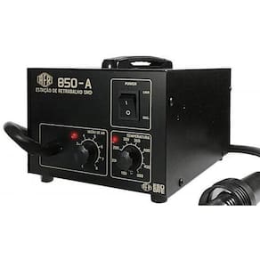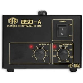 Estação de retrabalho - modelo analógico Possui controle de temperatura e vazão de ar. Foi especialmente desenvolvida para técnicos profissionais, no retrabalho em placas eletrônicas e componentes smd. Possui resfriamento automático e certificado inmetro. É ideal para trabalhos com componentes smd e até mesmo bga, a estação afr garante alta precisão no controle de temperatura do canhão de ar Retrabalho ar quente Controle da temperatura na faixa de 150 a 500 c; Precisão de controle da temperatura: menor que 2% Gabinete esd dissipativo; Resfriamento automático; Bomba tipo diafragma; Vazão de ar: 0,3 - 24,0 l/min. ajustável ; Resistência: 250 watts Bomba consumo: 45 watts; Consumo total: 270 watts para 127v / 340w para 220v Tensão: 127 ou 220 volts; Terceiro fio de aterramento; 2 anos de contra defeitos de fabricação Marca: Não Informado