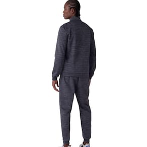 Conjunto de agasalho masculino confeccionado em malha de poliéster com elastano. A jaqueta possui abertura frontal em zíper com puxador personalizado, gola alta, manga longa com punhos em ribana, bolsos frontais embutidos, acabamentos em pesponto e aplique 3D de logo Fila Letter na parte frontal esquerda superior. A calça traz uma modelagem mais ajustada ao corpo, cós tombado com elástico e amarração interna ajustável, bolsos laterais, bolso embutido na parte traseira, barra em ribana e aplique 3D de logo Fila Letter vertical próximo ao bolso esquerdo. Comprimento total da calça: 102 cm.