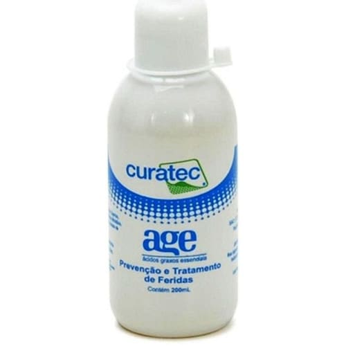 Curatec AGE é um curativo primário composto por óleos de origem vegetal ricos em ácidos graxos essenciais que favorecem o processo de cicatrização, desbridamento e alívio da dor. Indicado para hidratação da pele íntegra, evitando o aparecimento de feridas, úlceras de pressão escaras . Curatec AGE foi o primeiro composto oleoso rico em AGEs do mercado brasileiro registrado na ANVISA para tratamento e prevenção de feridas, frente aos demais do mercado que estão registrados como cosméticos. Contém 1 Frasco de Óleo AGE para cicatrização de feridas. Ean: 7898284486886