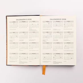 Organizador anual (mês a mês); Organizador de rotina; Páginas para anotações; Controle financeiro.