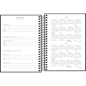 Capa: dura Espiral: colorido Folhas: pautadas decoradas Miolo Produto certificado: FSC Visão: diária exceto sábado e domingo Formato: 117mm x 164mm Gramatura: 63 g/m² Número de folhas: 160 folhas