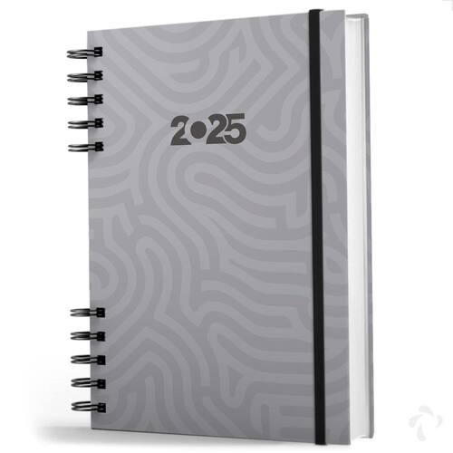 Agenda Capa Dura e Organização Pessoal Waves Cinza Agenda Planejamento 2025 da Nisti Print
