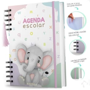 Agenda Creche Infantil Capa Dura Rotina Menina Elefante