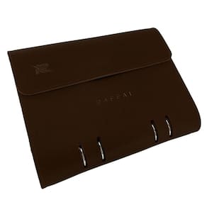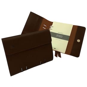 • Medidas 165 x 210 mm fechada, com aba para papéis e fechamento por botão magnético.
