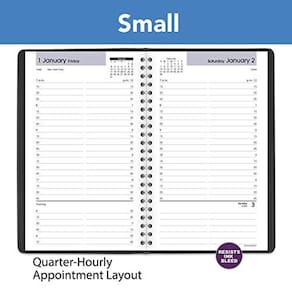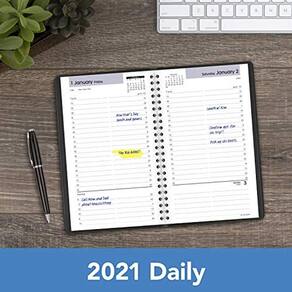 Enfrente com confiança cada prazo, eventos especiais e muito mais com organização clara e estilo profissional. O DayMinder Daily Planner cobre 12 meses, janeiro de 2021 a dezembro de 2021. Planeje sua agenda sem medo de distrair o sangramento da tinta. Nosso papel melhorado e de alta qualidade é projetado para resistência a sangramento de tinta superior, que mantém planos limpos e legíveis. Veja rapidamente o seu dia em uma única página. Cada dia é disposto com colunas fáceis de seguir. Perfeito para manter seus planos organizados e fáceis de ler. As páginas medem 5-1/2" x 8-1/2". Quebre seu dia em períodos gerenciáveis de 15 minutos. Os horários da semana estão disponíveis das.m 7h às 19h45.m. e os sábados funcionam das 7h às.m 16h45.m. Os domingos são condensados e sem tempo. O Planner tem uma tampa preta e uma ligação de fio duplo para ajudar a manter as páginas seguras para uso prolongado. Expanda suas habilidades organizacionais com páginas especiais. Inclui: calendário de referência de 3 anos e datas importantes.
