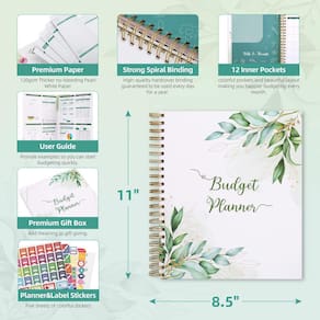 Temos o compromisso de oferecer acessórios e soluções práticas e modernas, feitas especialmente para ajudá-lo a organizar sua vida em todos os aspectos, aumentar sua produtividade e facilitar seu dia a dia! Para isso, contamos com materiais de alta qualidade e designs engenhosos para fornecer uma ampla variedade de livros, periódicos e acessórios cujo objetivo é facilitar cada tarefa organizacional sem sacrificar a funcionalidade ou o estilo! Você está tendo algum problema com seu pedido? Não precisa se preocupar, pois estamos sempre à sua disposição para resolver quaisquer dúvidas. Caderno de planejamento de orçamento - um formato bem organizado para ajudá-lo a controlar suas finanças Nosso caderno de controle de despesas foi projetado para facilitar o planejamento e a organização do orçamento mensal. Ele tem um grande modelo sem data de 12 meses que permite analisar, classificar e organizar todos os gastos, ao mesmo tempo em que implementa estratégias eficazes de gastos e economias para otimizar seu orçamento. O planejador de orçamento apresenta um design organizacional inteligente e bem otimizado que inclui um rastreador de contas, um rastreador de despesas, um rastreador de dívidas, bem como uma seção de revisão mensal e adesivos coloridos para tornar o planejamento do orçamento mensal mais eficiente e divertido! Ainda não está convencido? Aqui estão algumas das características incríveis deste produto: agenda de tamanho grande: 8,5 x 11 polegadas; papel de alta qualidade de 120 g de espessura; capa dura encadernada em espiral; capa boho chique; modelo sem data de 12 meses; modelo abrangente e bem organizado; solução eficiente para acompanhar suas contas, dívidas e despesas; inclui uma agenda mensal com seções personalizáveis, rastreador de despesas, rastreador de contas, seções de metas financeiras, rastreador de dívidas, seção de revisão mensal; Página de bolso mensal para guardar contas, recibos e outros documentos; excelente ideia de presente para amigos, familiares, colegas, colegas de trabalho; Obtenha controle sobre suas finanças e alcance seus objetivos com nosso planejador de orçamento!